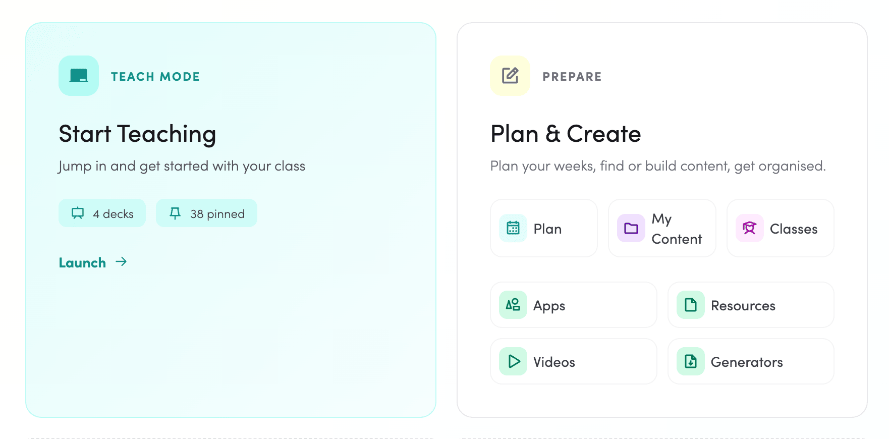 The other side of the coin is, well, everything else in The Hive. We simply group it under Prepare now. That could be planning, finding, and creating content and data for your class.